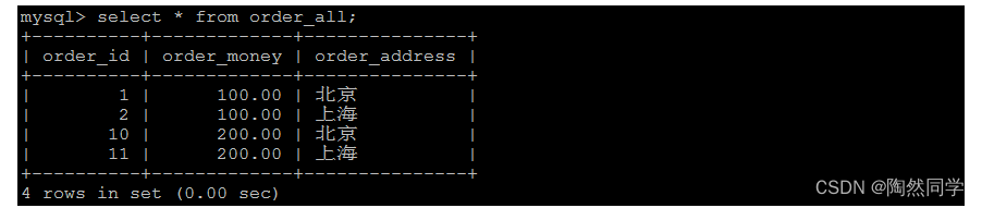 insert into order_all values(100,10000.0,'西安');