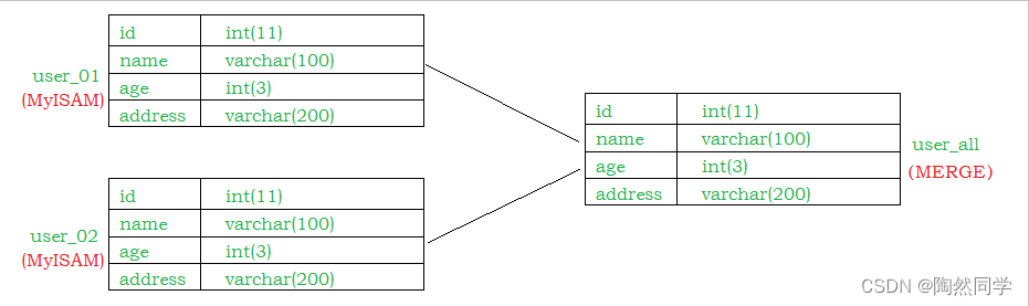 MERGE存储引擎是一组MyISAM表的组合,这些MyISAM表必须结构完全相同,MERGE表本身并没有存储数据,对MERGE类型的表可以进行查询、更新、删除操作,这些操作实际上是对内部的MyISAM表进行的。