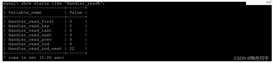 show status like 'Handler_read%'; show global status like 'Handler_read%';