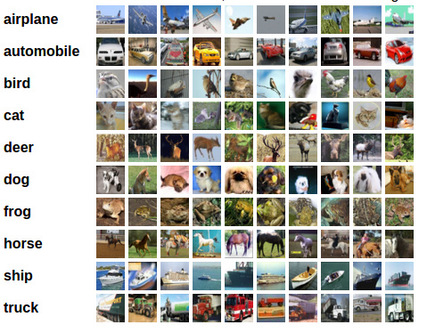 cifar 10 这个数据集一共有 50000 张训练集,10000 张测试集,两个数据集里面的图片都是 png 彩色图片,图片大小是 32 x 32 x 3,一共是 10 分类问题,分别为飞机、汽车、鸟、猫、鹿、狗、青蛙、马、船和卡车。这个数据集是对网络性能测试一个非常重要的指标,可以说如果一个网络在这个数据集上超过另外一个网络,那么这个网络性能上一定要比另外一个网络好,目前这个数据集最好的结果是 95% 左右的测试集准确率。