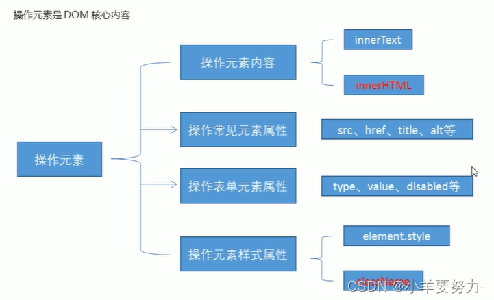 元素:页面中的所有标签都是元素,DOM中使用element表示