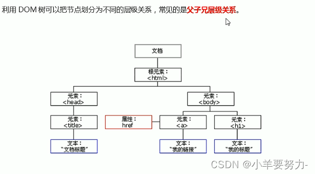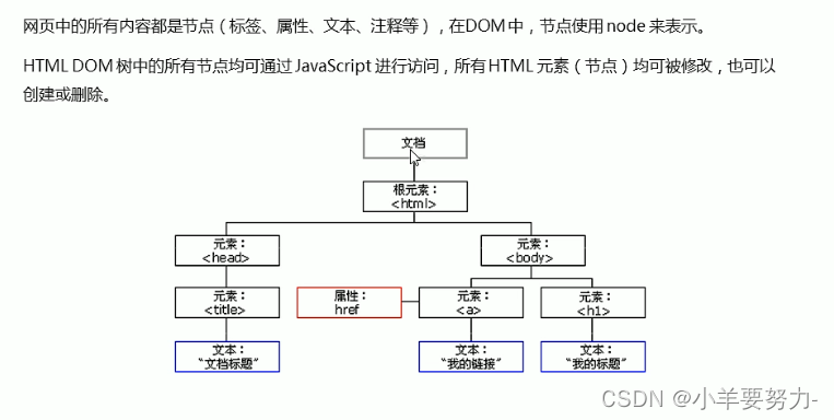 节点:网页中的所有内容都是节点(标签、属性、文本、注释等),DOM中使用node表示