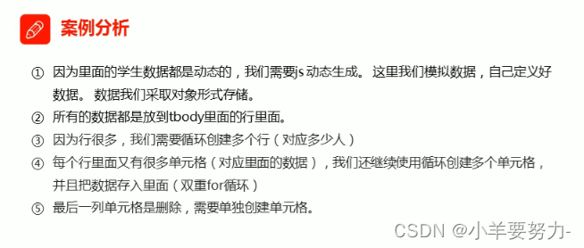 // 2、往tbody里面创建行(跟数据有关的3个单元格);有几个人(通过数组的长度)我们就创建几行