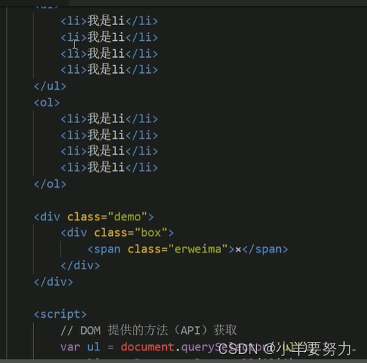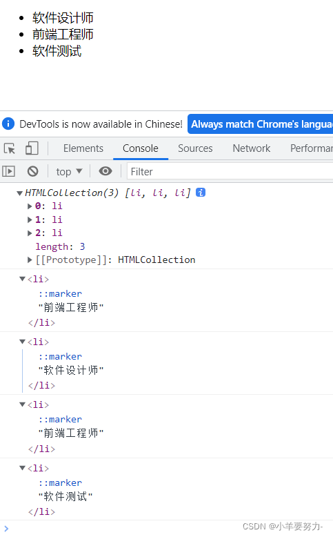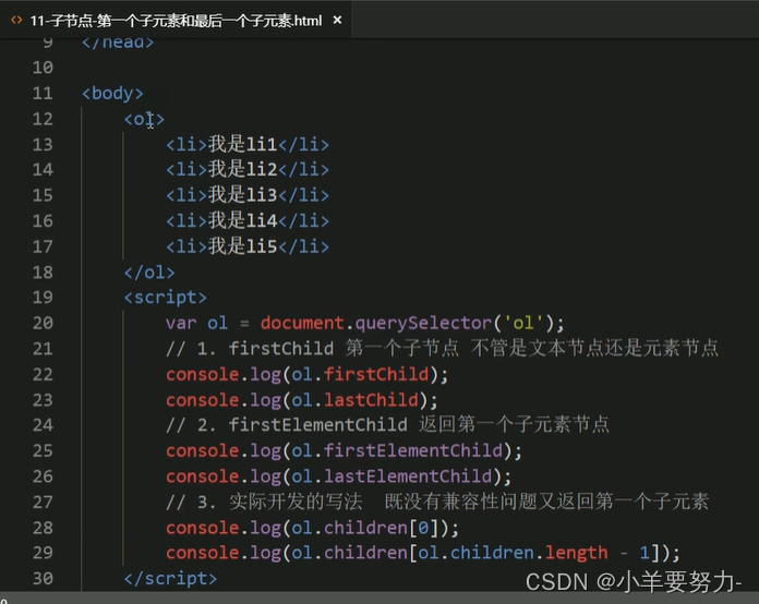 console.log(ol[0].getElementsByTagName('li'));//指定第一个ol,输出才不报错