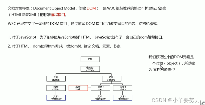 文档对象模型(Document Object Model,简称DOM),是W3C组织推荐的处理可扩展标记语言(HTML或者XML)的标准编程接口。