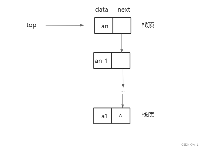 链栈是运算受限的单链表,只能在链表头部进行操作。