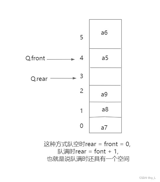 本文章使用的是第二种情况,第二种情况队满的条件是:,队列的长度是: