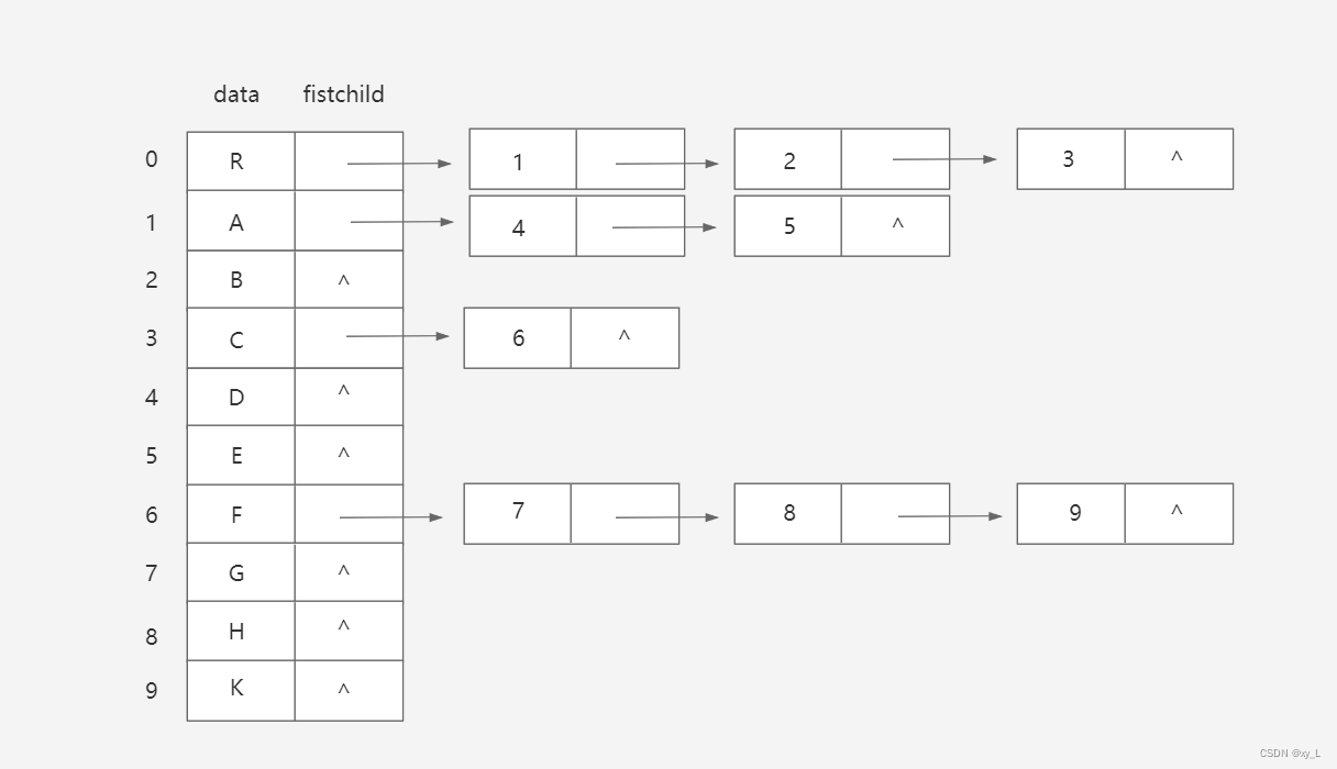 孩子链表的结构示意图: