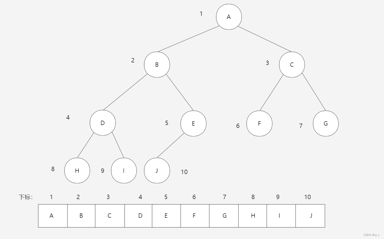 实现:按满二叉树的结点层次编号,依次存放二叉树中的数据元素。