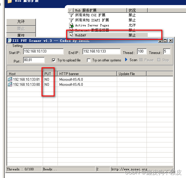 使用IIS PUT SCANER扫描IP是否可以PUT操作