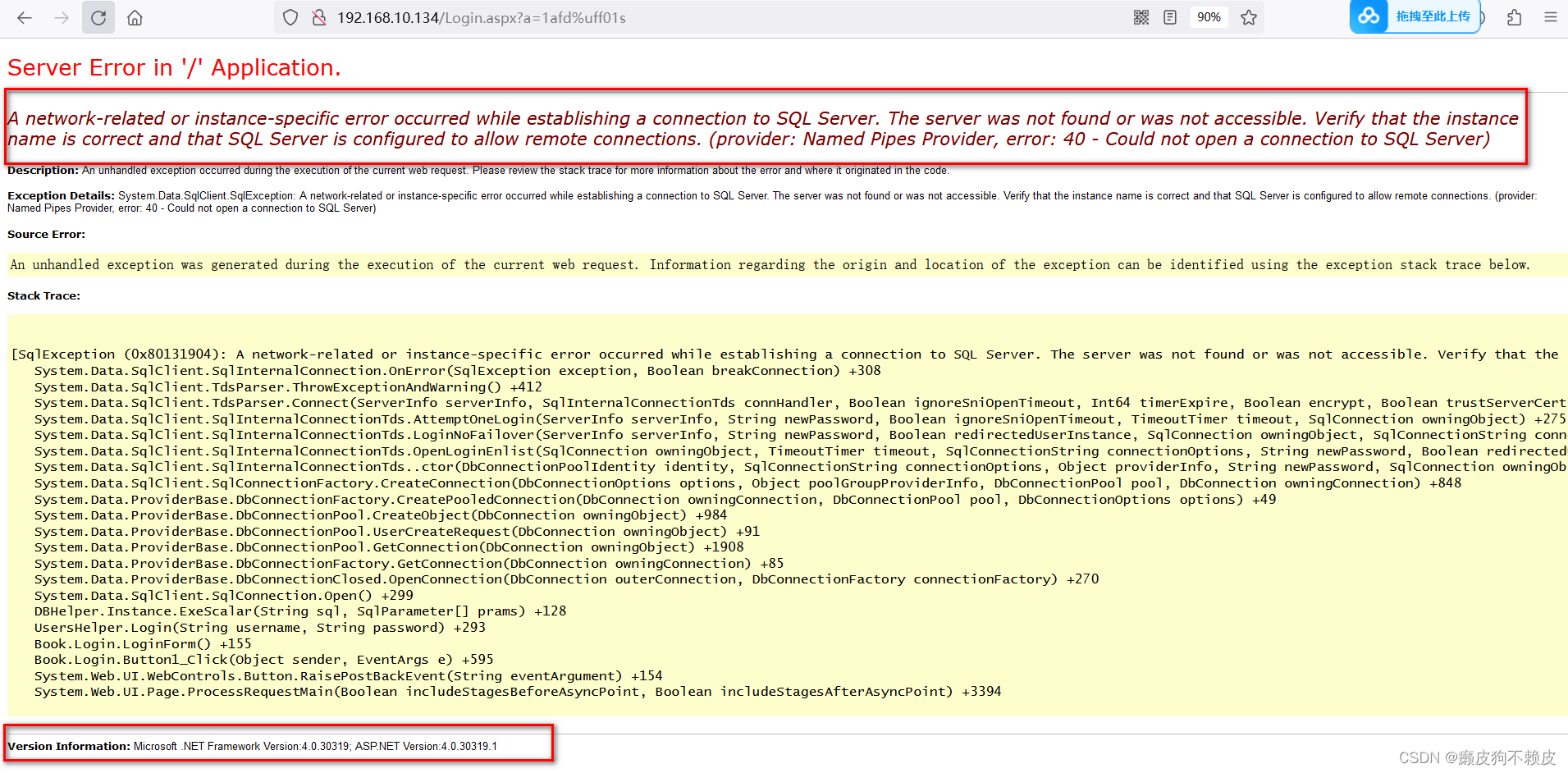 而 当customErrors 元素的 mode 属性设置为Off时候,就爆出了数据库错误,和.NET版本