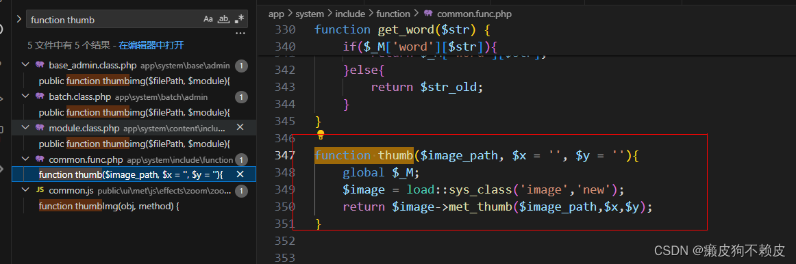 再看下一行 $image = thumb($path,$_M['form']['x'],$_M['form']['y']);这里对path作了处理,应该是宽高处理,追踪thumb这个函数