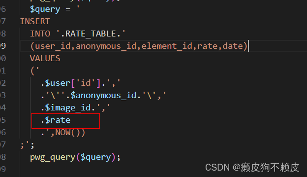继续往后看,可以看到$rate是会传进sql语句的,所以这里绕过in_array是会存在sql注入的