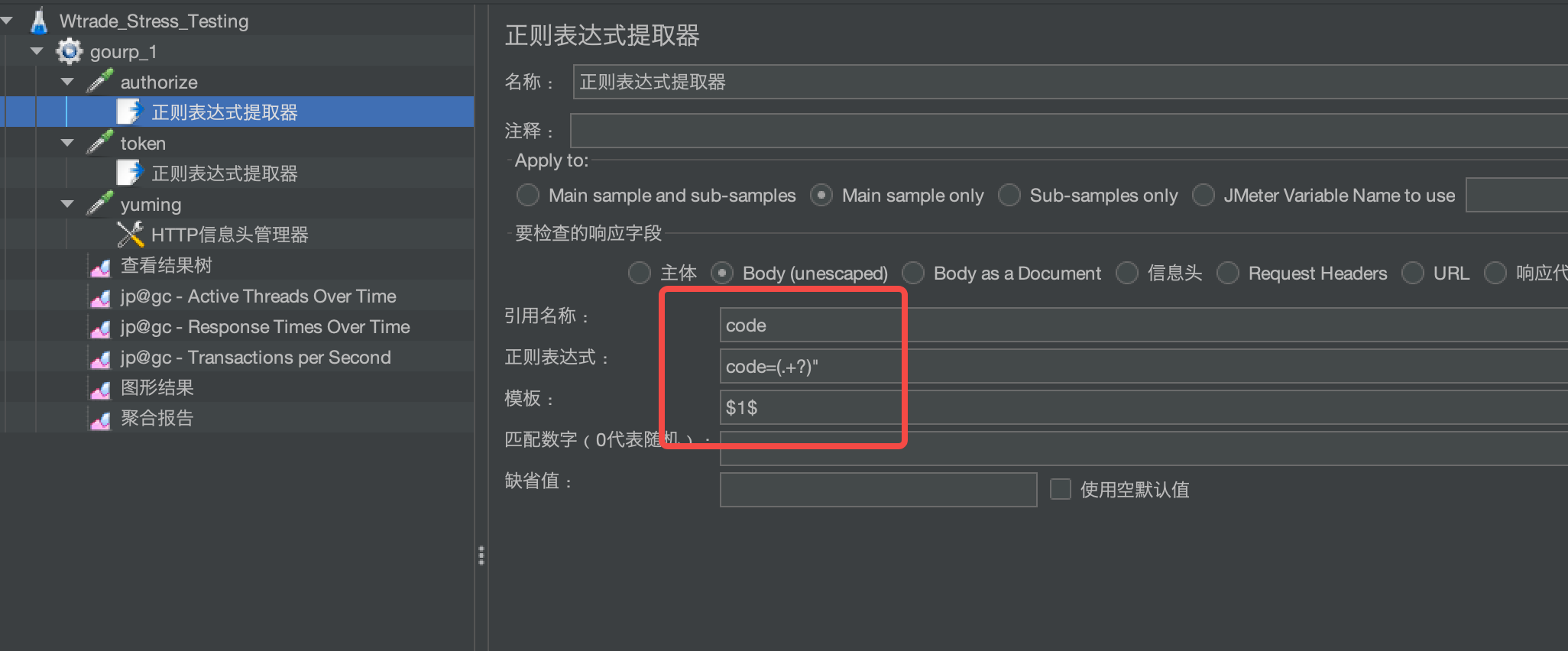 引用名称:提取引用名称,下个请求要引用此参数名称,如填写token,下个请求中用${token}