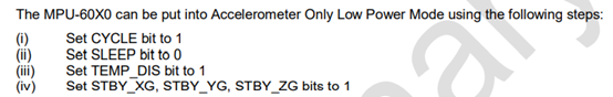 如果我们想要MPU6050工作在低功耗模式下,我们做如下配置: