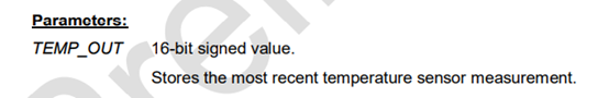这个温度输出值也不是实际的温度输出值,需要进行换算,这个输出的温度值为有符号的16位整形数据: