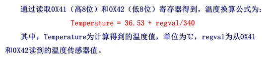 我们需要将8位数据按照高低位顺序组合成16位数据,但是这个数据并不是真实的温度数据,而需通过如下方程式计算得到真实的温度值: