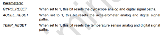 DEVICE_RESET 设置为1时,该位将所有内部寄存器复位为默认值。一旦复位完成,该位自动清零。每个寄存器的默认值可以在第3节找到。
