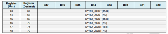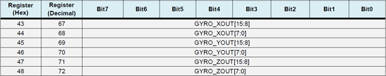 0X43~0X48-陀螺仪角度测量值保存寄存器