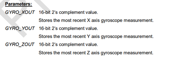 这6个寄存器分别为3组:0X3B和0X3C,0X3D和0X3E,0X3F和0X40,分别表征X,Y,Z轴的加速度测量值,但是注意这些值的输出形式: