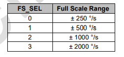 //fsr:0,±250dps;1,±500dps;2,±1000dps;3,±2000dps