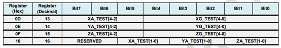就是相当于一个校准过程,我们先自己测量一个准确值,然后对比器件输出得值,看看偏差是否在合理范围之内。以Xg为例,Xg的[4:0]位存在于在0X0D寄存器中,我们将测量好的值放入0X0D寄存器中,然后器件会自动计算出结果和自身的测量值比较,看看是否在容许误差范围之内。