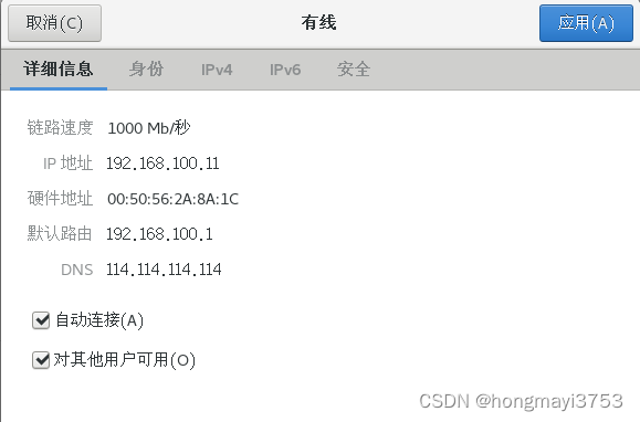 说明:网卡配置修改后,记得使用systemctl restart network重新启动下网卡服务