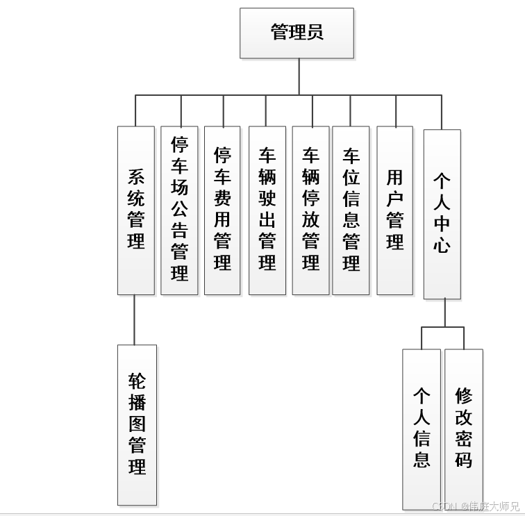 管理员权限操作的功能包括管理公告,管理停车场管理系统信息。