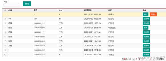 6.预约模块管理:预约模块查询、添加、删除、通过、不通过操作以及状态信息查看、