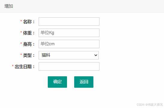 添加宠物信息: