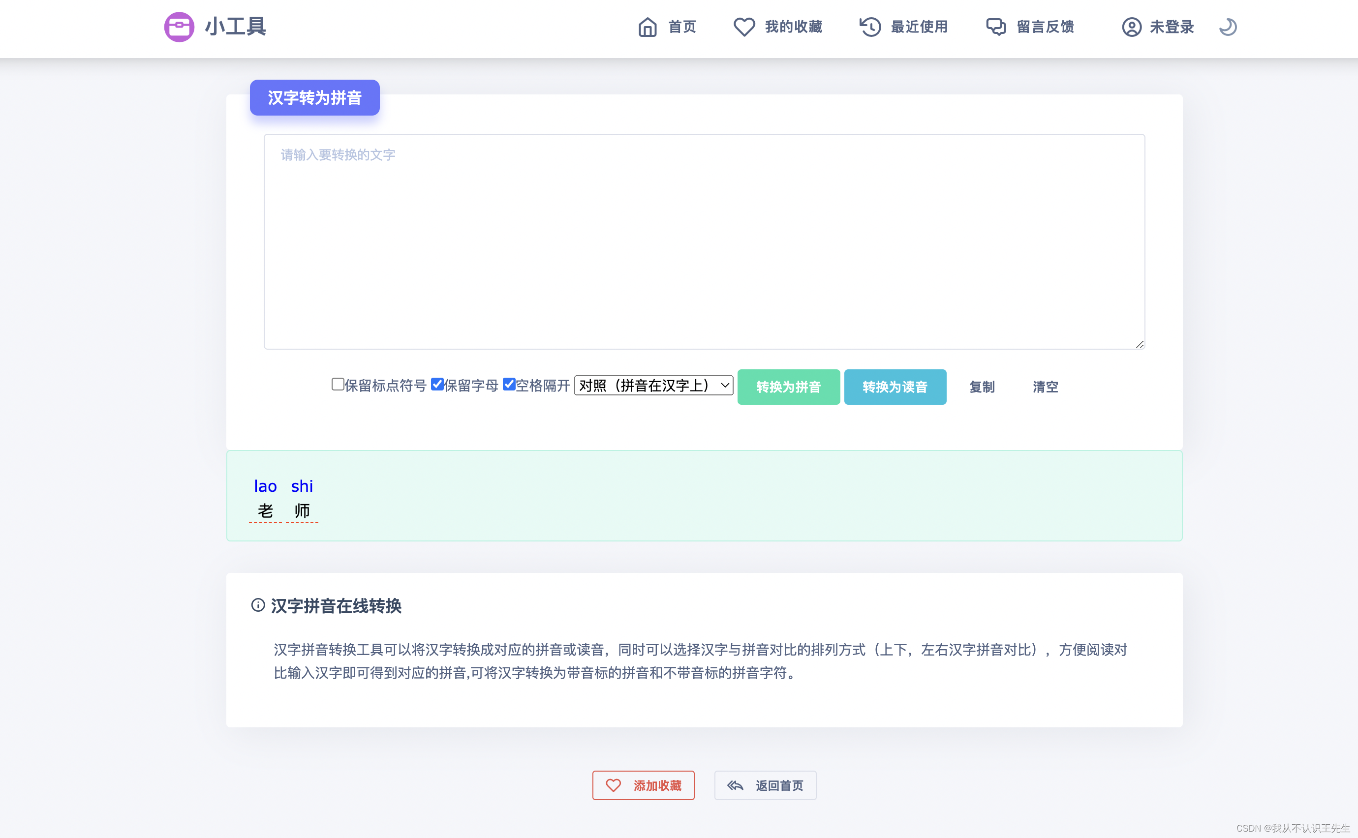 快速准确,一键汉字转拼音:全新汉字转拼音工具现已问世! 汉字转拼音工具是一款方便实用的应用程序,旨在帮助用户快速准确地将汉字转换为拼音。无论是单个汉字还是汉字组成的词语,这款工具都能够为你提供准确的拼音信息,帮助你轻松学习和应用汉语。