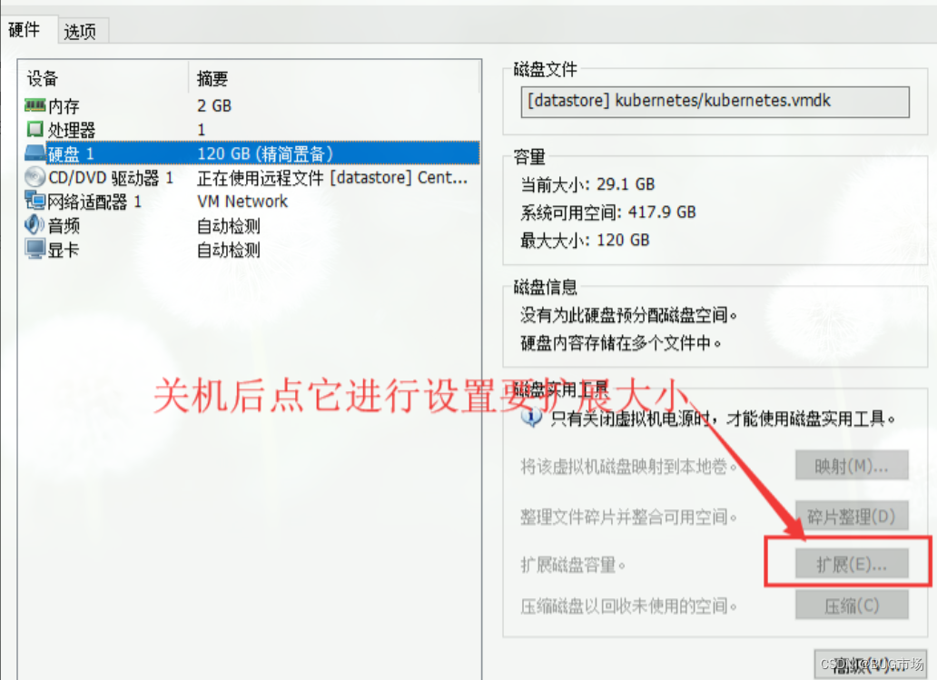 centos虚拟机扩展磁盘空间(经历无数坑,血一样总结,史上最全) 2 第二步 设置后进系统查看空间大小变化,实际并没有什么变化,我用的命令是df -h,我就蒙B了,上网一顿找,总算找到一个靠谱点的文章,但文章后半部分不对,我又结合另一个文章实现了这个针对centos版本的扩容,来吧,上操作。开始真正的操作1,执行命令:lsblk 进行查看 ,发现我在虚拟机中扩展的空间在sda中,综合各种说法,说白了就是这个sda并没有进行分区,所以现在这块的空间属于新大陆,我们得想办法把它空间开垦出来,压榨出来。执行命令:lvs进行查看是否成功,很显然,我的空间扩展成功了,