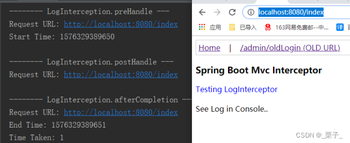 Spring Boot拦截器(Interceptor)用法 拦截器(Interceptor)同 Filter 过滤器一样,它俩都是面向切面编程——AOP 的具体实现可以使用 Interceptor 来执行某些任务,例如在 Controller 处理请求之前编写日志,添加或更新配置…Interceptor 作用日志记录、权限检查、性能检测、通用行为1.自定义。