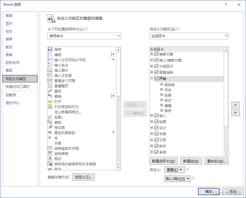 例如图7所示是Word的自定义功能,提供了非常强大的配置能力,用户可以对Word的UI实现颠覆性的重新设置。