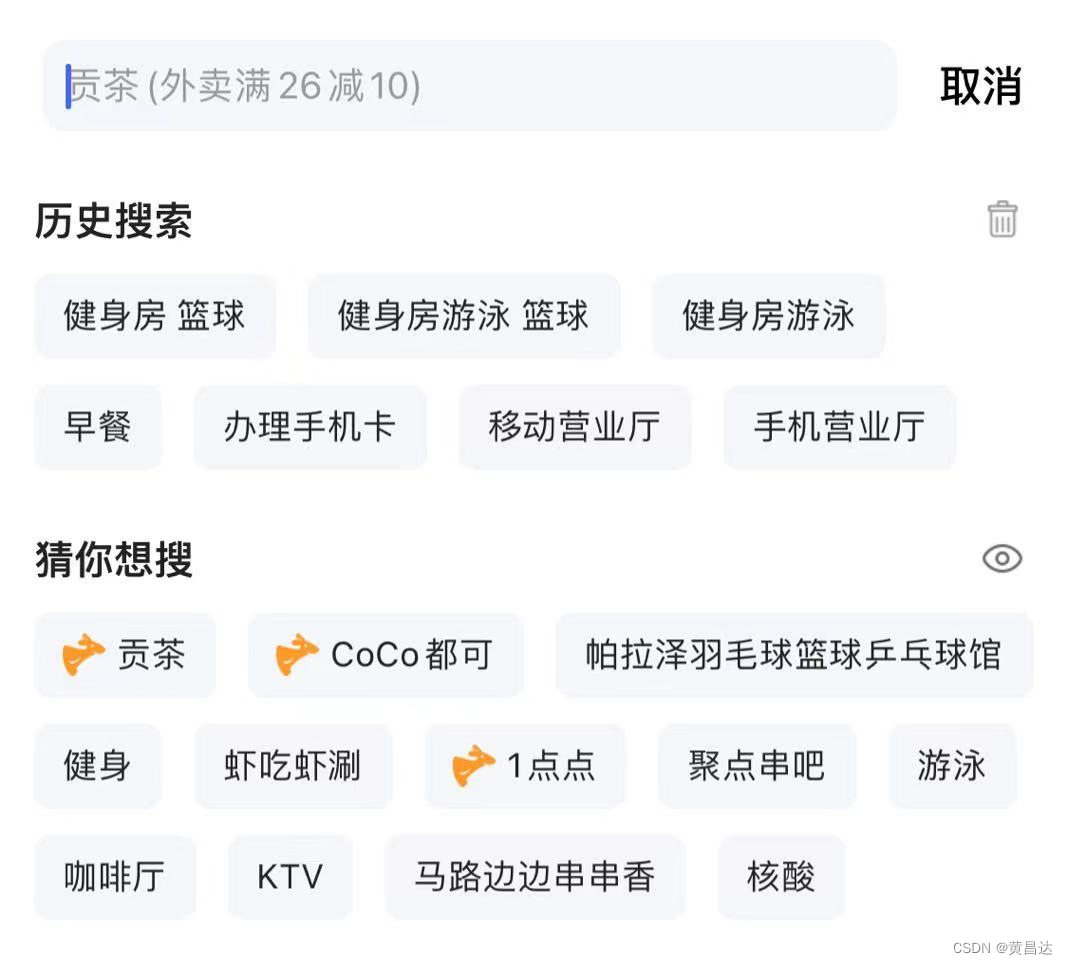 图7是美团APP的搜索页,可以看到上面的“搜索发现”是推荐类功能,下面的“最近搜索”则是保留的用户最近使用过的搜索关键词。