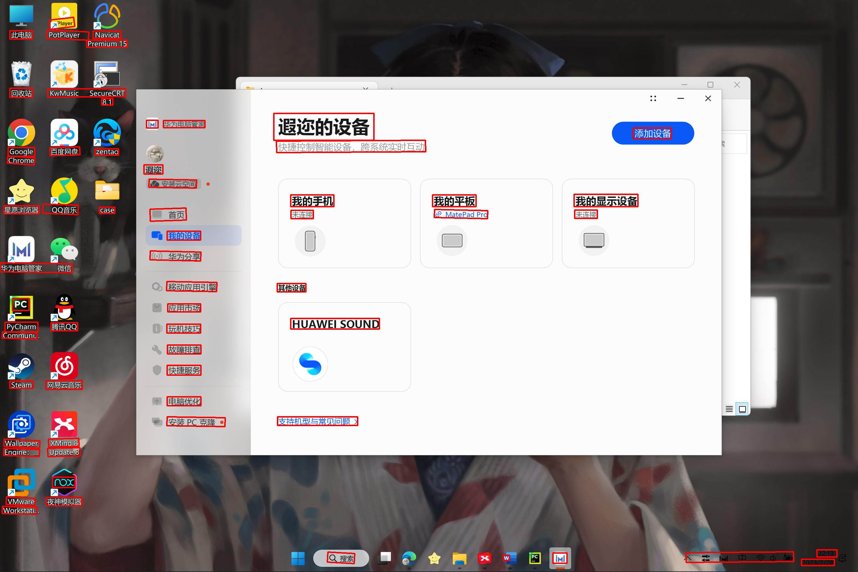 在全屏窗口中匹配"我的手机"字段,并返回该字段中心的坐标,示例如下: