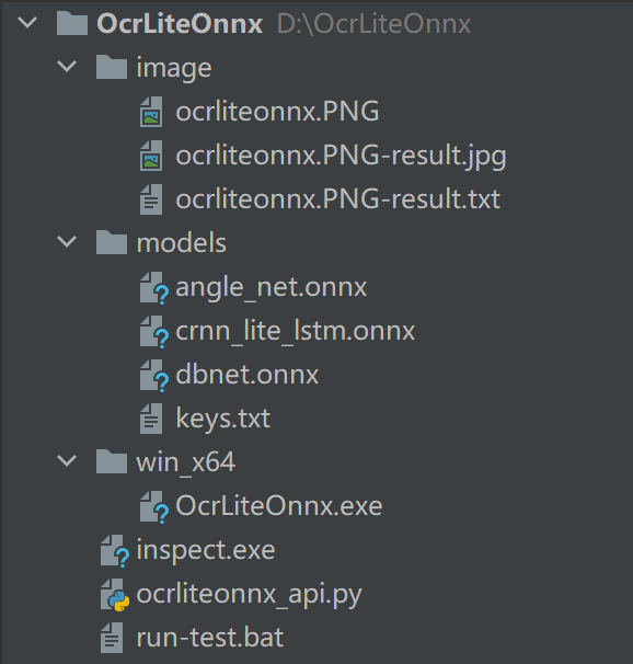 image目录中ocrliteonnx.PNG文件是需要识别的图片文件,默认位置设置在这个目录下,也可以自行更改(同时需要修改run-test.bat中的图片路径)。