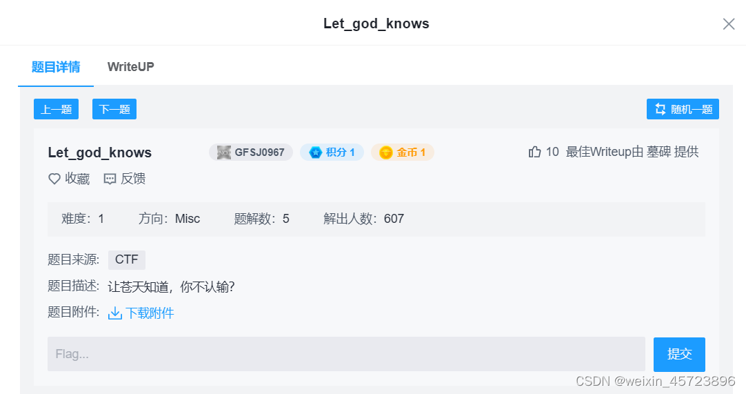 XCTF-MISC-Let_god_knows 当查看到Red plane 0这张图片时,发现在“道”的上边有一个二维码,把图片放进kali里边查看,长宽没有问题,分离图片也没有任何信息。把图片放进stegsolve里边一张一张的查看,有没有信息。提示让苍天知道,你不认输?下载附件查看,是一张图片。