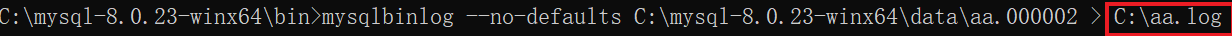 C:\mysql-8.0.23-winx64\data\aa.000001 > C:/aa.log