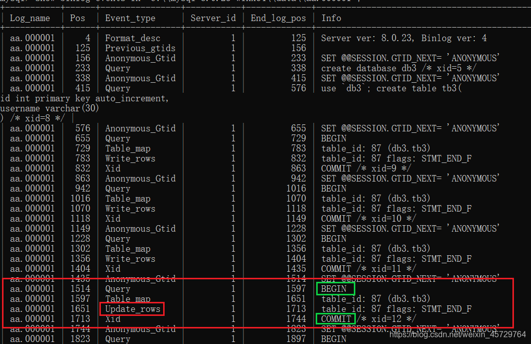 show binlog events in "C:\\mysql-8.0.23-winx64\\data\\aa.000001";