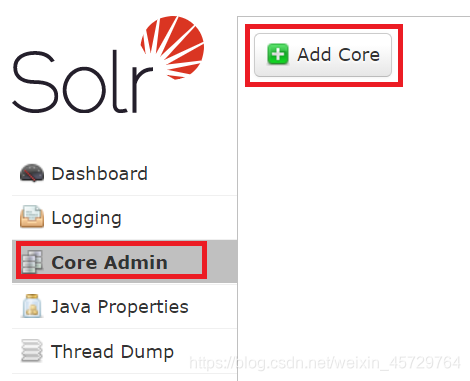 - Core Admin: 在这里可以添加Solr Core的实例,也就是创建一个索引库,类似数据库,用来存放数据。所以如果要使用Solr必须创建一个索引库才能使用。主要有Add Core(添加核心),Unload(卸载核心),Rename(重命名核心),Reload(重新加载核心),Optimize(优化索引库)。
