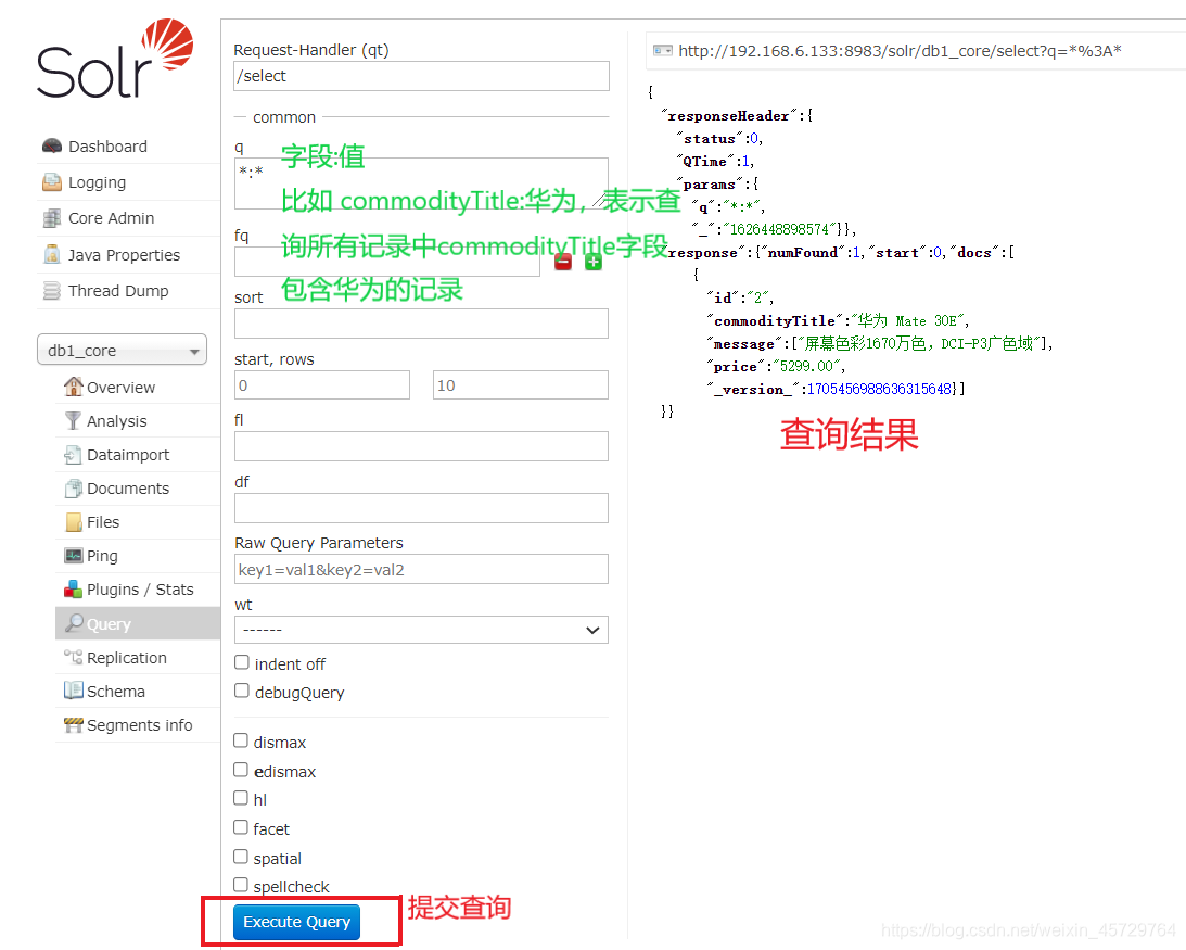 说明一点,如上commodityTitle字段只所以可以根据它作为查询条件,那是因为commodityTitle的index为true,如果为false,那是不能作为查询条件的。