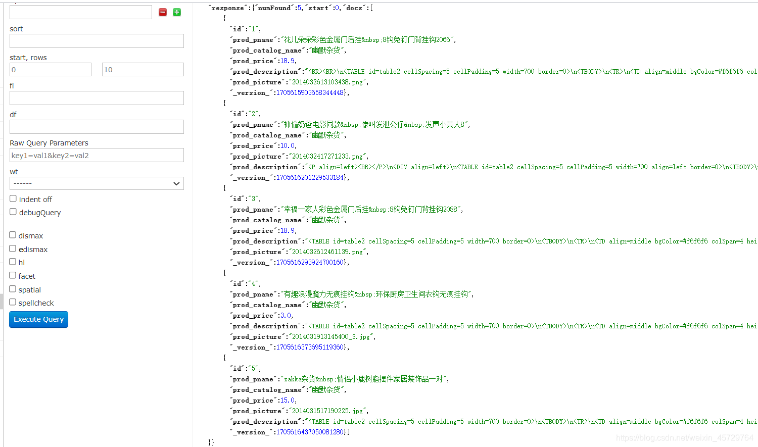 solrQuery.setFields("id","prod_pname","prod_catalog_name");//注意这里没对prod_price做回显,所以查询结果是0.0