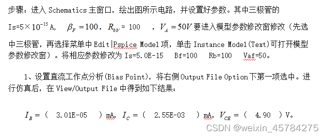 实验6 音频放大器的仿真验证 1、掌握利用Capture来绘制图形方法。2、掌握修改元件模型参数(Model parameter)方法。3、掌握静态(Bias point)分析方法。4、掌握瞬态(Transient analysis)分析方法。5、掌握交流扫描分析、噪声分析方法。...