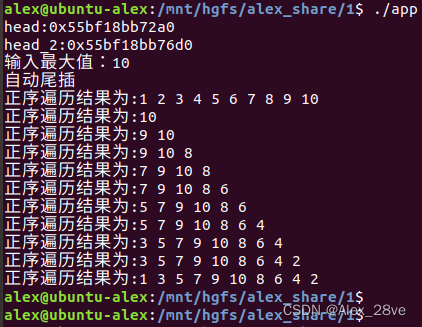 再来看题目的后半段:“每个节点分别存放1,2,3,4,5,6,7,8,9,10,然后通过某些操作,将其重新排列成1,3,5,7,9,10,8,6,4,2,即奇数升序偶数降序,并在屏幕上打印出来。”