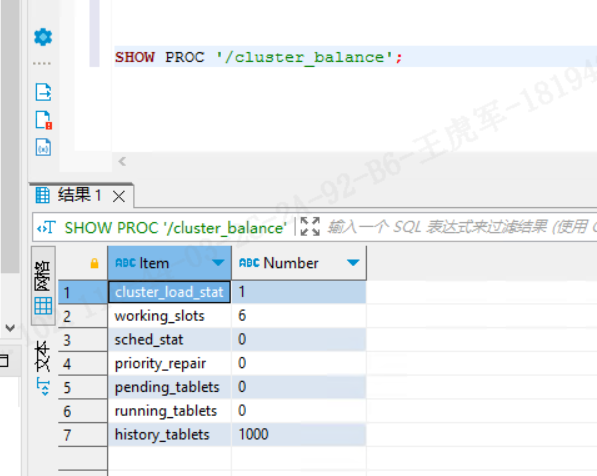 | cluster_load_stat | 当前集群的负载状态(0 表示空闲,1 表示正在调度) | 1 → 正在执行负载均衡任务(Tablet 迁移中) |