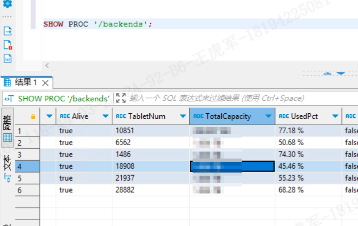因为这条命令只反映 调度状态,还需要结合 SHOW PROC '/backends'; 才能看出: