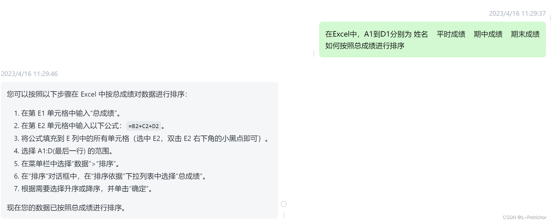 根据GPT的回答,可以从4--7得知排序方法(若没学过Excel,可以快速学会排序),稍作变通