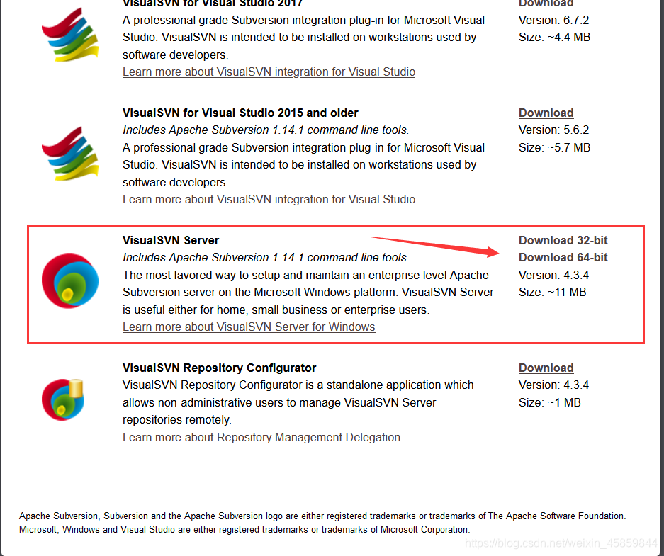 服务端 https://www.visualsvn.com/downloads/